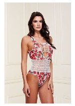Baci! 1079 Halter Top Crotchless Jacquard Catsuit Black OS