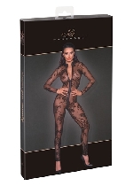 Noir Handmade Tulle Bodysuit With Patterned Flock Embroidery