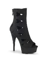 Pleaser 6" Heel, 1 3/4" PF Peep Toe Cutout Ankle Boot, Back Zip, Black Faux Leather/Black Matte