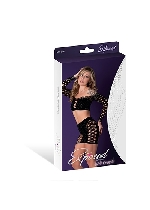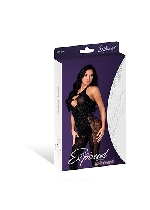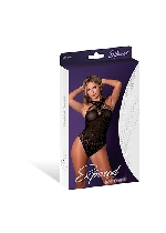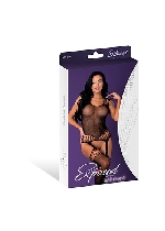 Seamless Crotchless Teddy Black W/ Rhinestones One Size