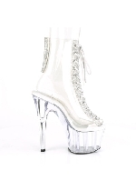 Pleaser 7" Heel, 2 3/4" PF Ankle Cuff Sandal w/Rhinestone, Back Zip, Clear-Silver/Clear