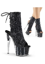Pleaser 6" Heel, 1 3/4" PF Open Toe/Heel Ankle Boot w/RS, Side Zip, Silver Multi RS