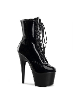 Pleaser 7" Stiletto Heel Lace-Up Platform Ankle Boot, Side Zip Patent/Black