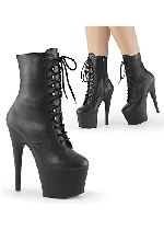 Pleaser 7" Stiletto Heel Lace-Up Platform Ankle Boot, Side Zip Black Faux Leather/Black Matte