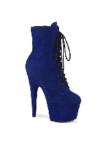 Pleaser 7" Heel, 2 3/4" Platform Lace-Up Ankle Boot, Side Zip Royal Blue