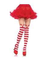 Rudolph Reindeer Opaque Striped Pantyhose With Sheer Thigh High Accent