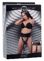3 Pc Rhinestone Lace Bra Top Panty and Garter Belt Set Black