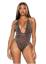 Convertible Lurex Rhinestone Teddy - One Size - Black Silver
