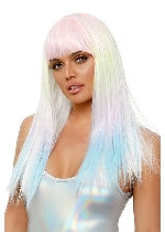24 Inch Straight Bang Pastel Ombre Wig