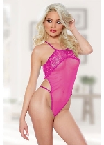 Allure Lace And Fishnet Halter Teddy Hot Pink