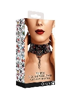 Ouch! Printed Collar With Leash Old School Tattoo Style Black