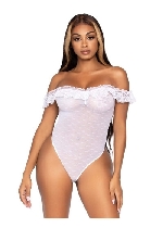 Lace Ruffle Snap Crotch Teddy - One Size - White