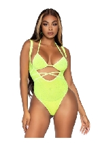 2 Pc. Rhinestone Wrap Around Bikini Top and Suspender Body Suit - One Size - Neon Yellow