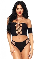 Leg Avenue Off Shoulder Opaque Crop Top with Matching Thong-One Size-Black