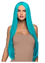 33 Inch Long Straight Center Part Wig Turquoise