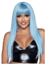 24 Inch Long Straight Bang Wig Blue