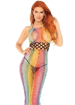 Rainbow Fishnet Halter Dress - One Size - Multicolor