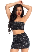 2 Pc Rhinestone Bandeau and Mini Skirt