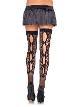 Rhinestone Lace Top Fishnet Stockings OS