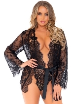 3pc Lace Teddy and Robe Set Black