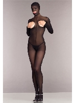 Opaque Cupless and Crotchless Hooded Bodystocking
