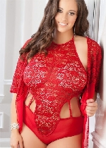 3pc Plunging Garter Lacy Slip Queen Size Red Desire