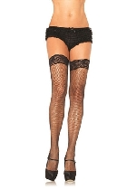 Spandex Fishnet Stockings With Comfort Band Top Black 1x/ 2x