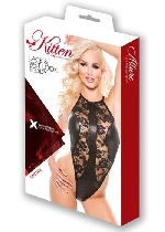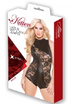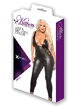 Kitten Plus Lace And Wet Look Catsuit Black Plus Size On