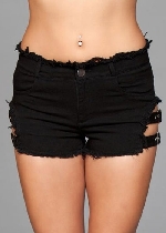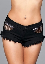 Denim Shorts With Fishnet Top Black