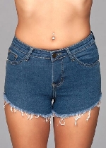 Dark Wash Cut Off Denim Booty Shorts Blue