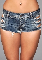 Denim Shorts With Fishnet Top Blue