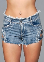 Light Wash Denim Shorts With Lace Up Side Blue