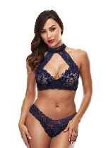 Lace Halter Bikini Set Blue