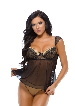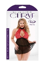Valentina Flocked Heart Halter Keyhole Front Babydoll with Panty