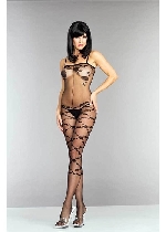 Opaque Floral Design Bodystocking with Shoulder Straps