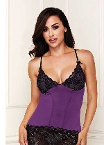 2pcs Lace Chemise G-String Set Purple