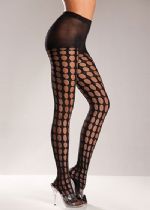 Opaque Black Spandex Pantyhose with Multi-Fencenet Sides