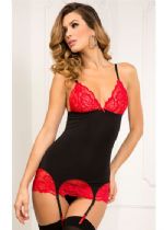 Rene Rofe! Soul Pleasure Garter Chemise Set (in Black/Red)