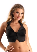 High Neck Bra, Gartered Waist Cincher & Thong Set & Cat Ears Black