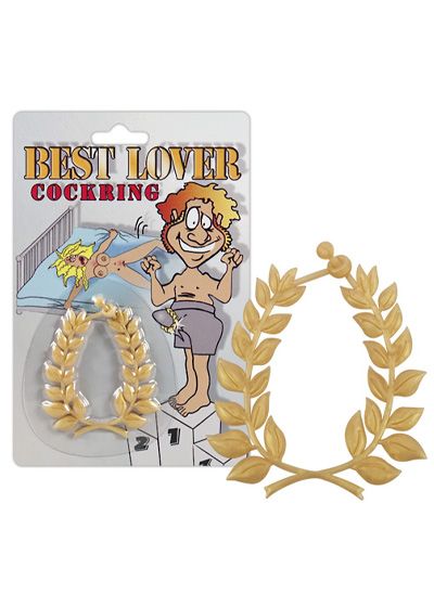 Gold-toned cock ring shaped like a laurel wreath to award the best lover. Ring diameter: 3-3.5 cm. Note: this is a novelty toy and does not cause stronger or prolonged erections. Material: silicone, free of phthalates according to EU regulation REACH.
