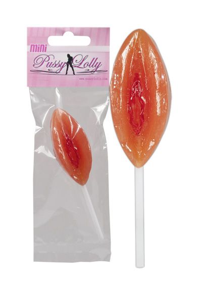 Lolly in pussy-design with strawberry flavor. Skin-coloured/rose. 22 g.