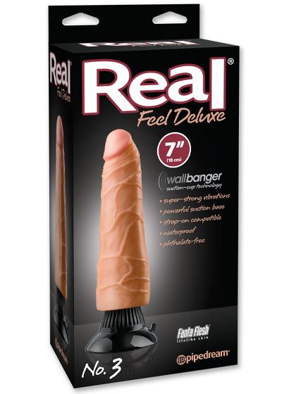 Enjoy the "Real Feel" of velvet-soft, lifelike skin with this incredibly realistic vibe. Meticulously designed with a pronounced head and bulging veins, the super-lifelike shapes, textures and colors of this vibe truly look and feel like the real thing! Made with phthalate-free Fanta Flesh, this squishy material mimics the softness of real skin and is completely body-safe.