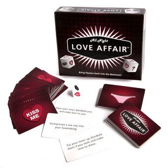 Spice up your love life with the fun Love Affair dice game. Roll the dice, pick a card and follow the instructions - soon you'll be kissing, touching, licking and a whole lot more. A great game for teasing.