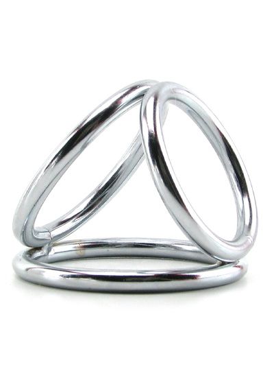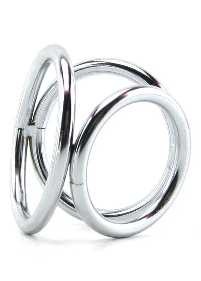 The larger of the rings fits over the shaft and balls, up against the body, while the mid-sized number loops under the testicles, leaving the smallest to fit over the shaft. In combination, the three join forces to support, constrict and control sensation in a way that perhaps no other cock ring can. Needless to say, the steel is definitely unyielding and will stand up to some very enthusiastic handling.