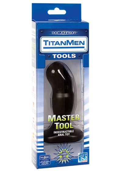 Looking for the latest and greatest in anal toys for men? Doc Johnson's brand new line of Trainer and Master Indestructible Anal Tools is now available, and with 3 unique shapes in 2 sizes, you'll definitely find something to please your behind! The Master Tool #1 is an anatomically correct butt plug with a smooth head that's angled for P-spot stimulation. The head is smooth and slick for easy, comfortable insertion, while the body is a matte texture for some different sensation and also to help keep the tool in place. The base is wide and easy to grip, so it's great for using solo, or with a partner. The 6 1/2 inch size is perfect for anyone who is experienced with anal play, if you're just starting out, have a look at the Trainer sizes, which are identical in shape, but on a smaller scale. The Tools are all made from high quality thermoplastic rubber enhanced with SilAgel formula, which is anti-bacterial, non-toxic, latex and cadmium free, so you know you're covered in terms of safe use. You can try out your Master Tool #1 right out of the box, because it comes with a sample of Titanmen Titanium lube. Explore!
