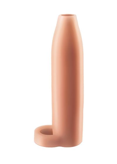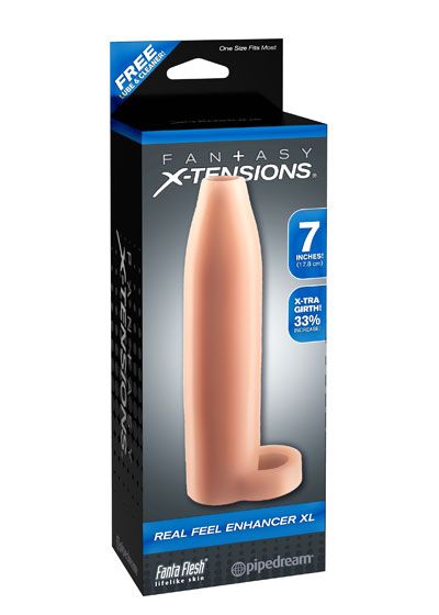 The Real Feel Enhancer XL is a customizable sleeve that can be easily trimmed at the tip for a perfect fit and features an open-ended head so you can still enjoy the natural touch of your lover. It's super-stretchy to accommodate most sizes, snug enough to help you last longer, and has a ball strap to prolong ejaculation for an explosive climax. This super-lifelike sleeve makes you 33% thicker to offer your lover a fuller feeling and exceptional climax, while the Fanta Flesh material feels like a second skin -- only better!