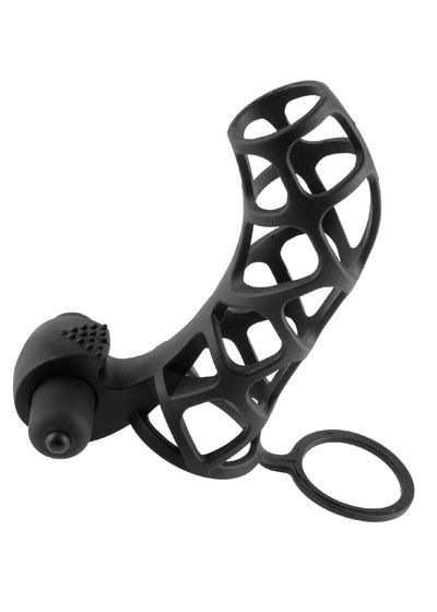 The Extreme Silicone Power Cage is the ultimate erection enhancer! With this cock cage wrapped snug around every inch of your manhood, you'll maintain rock hard erections and prolong the fun while you stimulate your partner. The ball strap prolongs ejaculation for explosive climaxes, while the cage leaves your cock open to feel every sensation and still enjoy the natural touch of your lover. You'll enjoy thick, throbbing erections and your partner will love the cage's added sensations. The vibrating clit stimulator delivers direct stimulation to their most sensitive spot. Just one click of the powerful waterproof micro vibe and you'll make them cum harder than ever before!