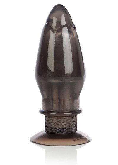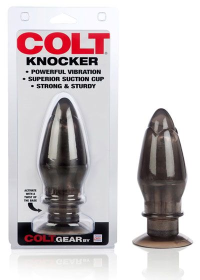 A big, powerful plug-shaped vibe from the male-geared Colt line, the plush Knocker has a great full coverage shape, precise feel, and one impressive mode of steady vibration. A classic tapered arrowhead shape enhanced with a subtle petal texture at the tip inserts smoothly and comfortably, widening gradually for a pleasurable stretching sensation that won't shock the anal muscles. The suction-cup base is wide and safe, allowing for full penetration with no worries about too-deep insertion- although you'll think of tons of ways to add the Knocker into playtime, it's not particularly suited to long-term wear due to the relative thickness of the neck. Just a twist of the base starts up the vibration when you've got the Knocker perfectly positioned. Use a great quality water or silicone based lube with this toy to increase your pleasure and comfort, and to keep the plush PVC material in top shape. Requires 2 AA batteries (sold separately). Not recommended for use in water.