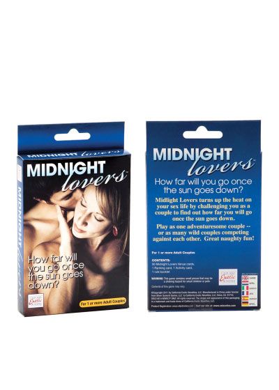 Midnight Lovers Card Game turn up the heat with this challenging couple's game. Game that asks how far will you go once the sun goes down? Includes: 50 Midnight Lovers Venue cards, 1 ranking card, 1 activity card, instructions. For 1 or more adult couples.Game measures 6.25 inches long by 3.75 inches wide by .75 deep.