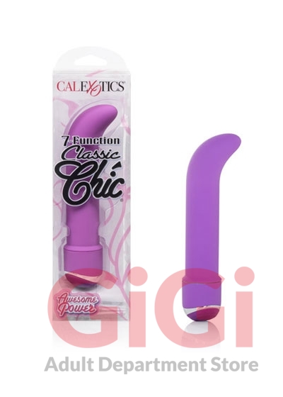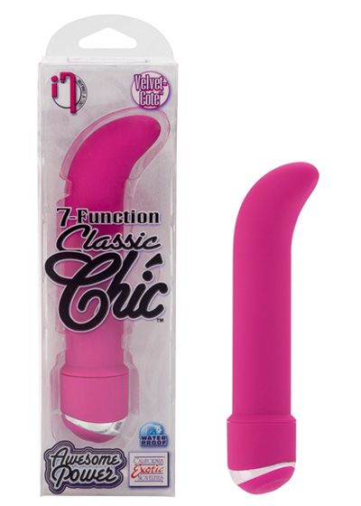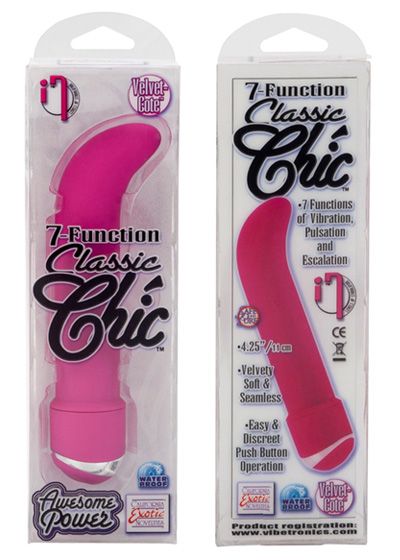 With a user friendly, perfectly g-spot angled shape and 7 orgasmic functions, the Classic Chic vibe packs all the pleasure potential you crave. A seamless, silky tapered shape is topped by a tip that's ideally contoured and upward-reaching to hit the G, but it's as perfect for pinpointing the clit and other external pleasure points as it is for insertion. Over top of the firm, precise plastic, there's a signature Velvet-Cote material with a whisper soft touch, it feels great against the skin, inside or out; and gets nice and slick with the addition of lube. As mentioned, there are 7 functions of vibration, escalation and pulsation to pick from, you'll love finding your favorite for each sweet spot- a soft touch push button on the underside of the base takes you through the patterns. The Classic Chic is completely waterproof, so you'll be able to enjoy it in the bath or shower, plus, you can wash it thoroughly under running water. As with any waterproof toy, you'll want to make sure the battery compartment is closed tightly before getting it wet. Use a good water based lube if needed to keep the rubber based coating strong. Takes 2 AAA batteries (sold separately).